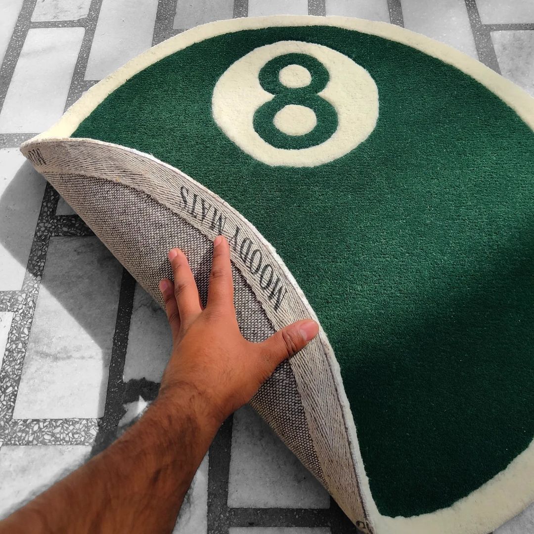 Sink the Perfect Shot with the Green 8 Ball Pool Custom Rug from Moody Mats!